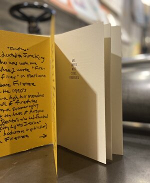 Questa edizione di Lawrence Ferlinghetti è stata realizzata dalla casa Editrice Damocle di Venezia in 100 esemplari numerati. La stampa dei testi è stata eseguita con il torchio tipografico della Stamperia. Legati a mano con filo di lino nel mese di Aprile 2017.