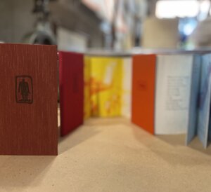 Pierre decise di fare tre libretti di piccoli formati che sarebbero stati poi raccolti tutti insieme; penso che l’idea di separare le tre poesie sia stata voluta da Pierre per sottolineare la capacità della poesia di essere unica in tutte le sue forme e irrepetibile nei suoi momenti creativi. Non voleva fare la solita raccolta di poesia, e così scelse di puntare sulla similitudine della forma esterna dei tre libri mentre all’interno sorprende la fantasia del allestimento delle pagini dove forma, tecnica di stampa, pieghe, svolgimento della lettura, manipolazione delle pagini sono sempre diversi.
