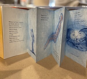 “Blueprint” contiene delle incisioni ad acquaforte che rappresentano momenti di spicco della poesia scritta da Michael. In realtà sono tanti interventi ad acquaforte su una grande lastra che veniva stampata in blu e che in questo modo lasciava sul fondo della carta un velo di colore come richiamo del titolo. Il libro è a fisarmonica con in centro allo svolgimento un gran sole rosso su fondo giallo stampato su carta cinese che lega le due fisarmoniche laterale del libro. Questo crea un momento centrale al libro e sorprende le dita del lettore e i suoi occhi attenti. Il testo è distribuito su le varie pagini e rigorosamente composto a mano con i caratteri di piombo.