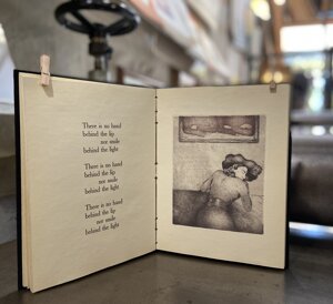 Nadine era una nostra grande amica, nostra di Roberto, Pierre e io. Una donna molto dolce, anche a volte impetuosa e soprattutto piena di curiosità ed energia. Era pittrice e si è avvicinata alla stampa d’arte quando ha incontrato Roberto, la Stamperia e noi. Viaggiava molto e una volta ha incontrato un poeta americano e così le venne l’idea di questo libro dove i testi di Harry Ghisi sono accompagnate dalle incisioni di Nadine van den Hove.