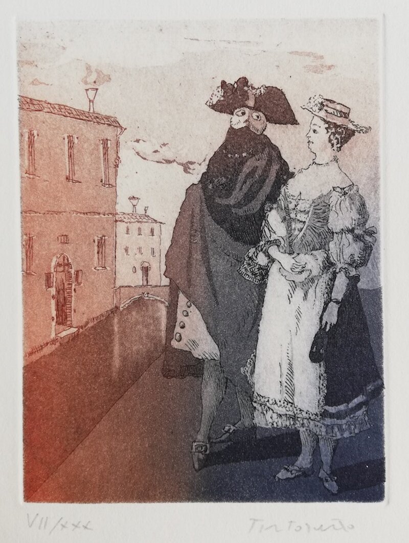 Acquaforte, Acquatinta, incisione, Venezia, maschere, bauta