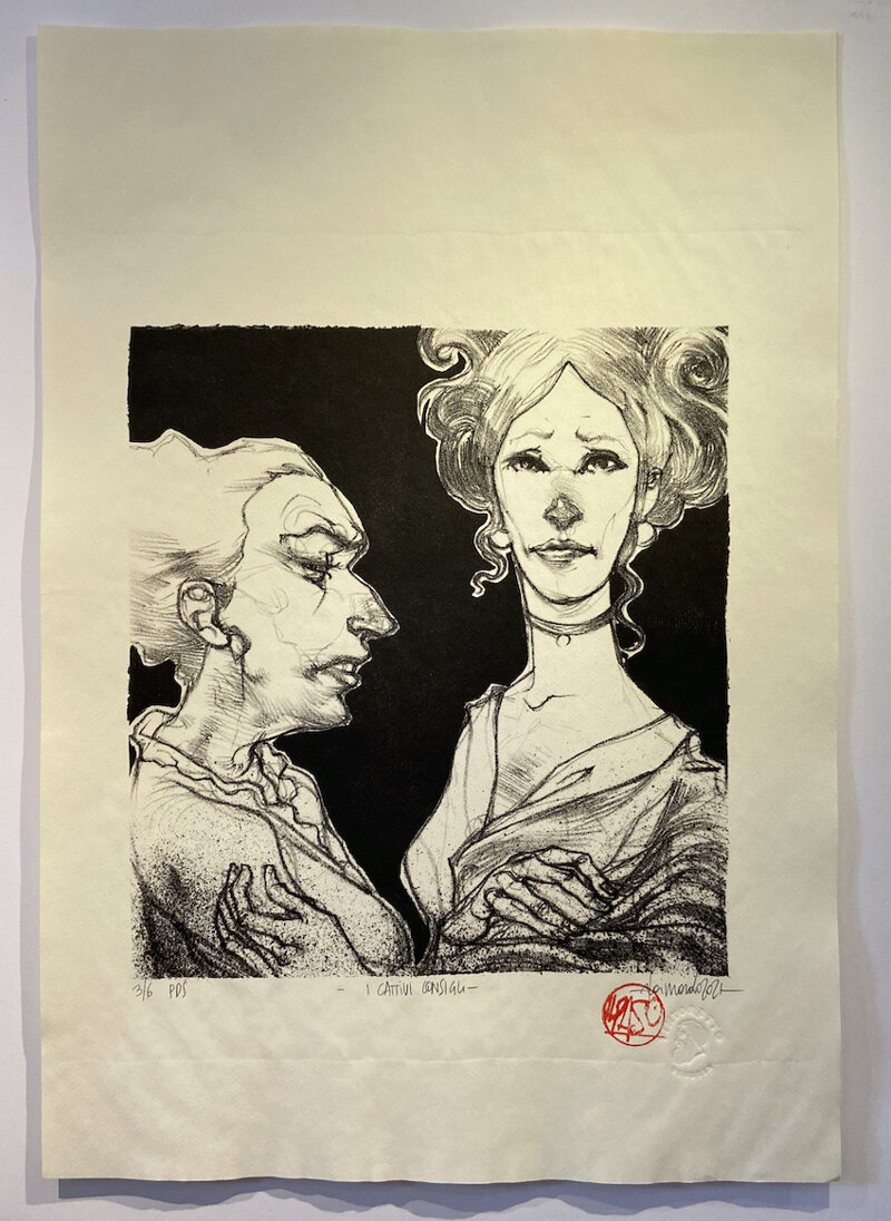 Dimensioni (hxl, cm):Studia al Liceo Artistico statale, all’Accademia delle belle Arti di Venezia e alla scuola di pittura di E. Vedova. Rappresenta la città di Venezia alla Biennale giovani artisti dell’Europa mediterranea di Lisbona nel 1994 nella sezione fumetto. Dal 1993 al 2000 ha lavorato nel campo delle scenografie per teatro alla Bottega Veneziana di Quarto d’Altino (VE). Ha collaborato con Art Project di San Giorgio in Bosco (PD) per la progettazione e la realizzazione di parchi di divertimento ed elementi scenografici per l’Arabia saudita, gli Emirati Arabi, Tunisia e Taiwan.